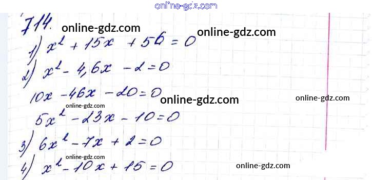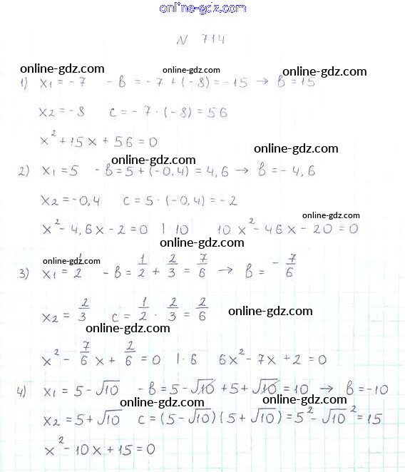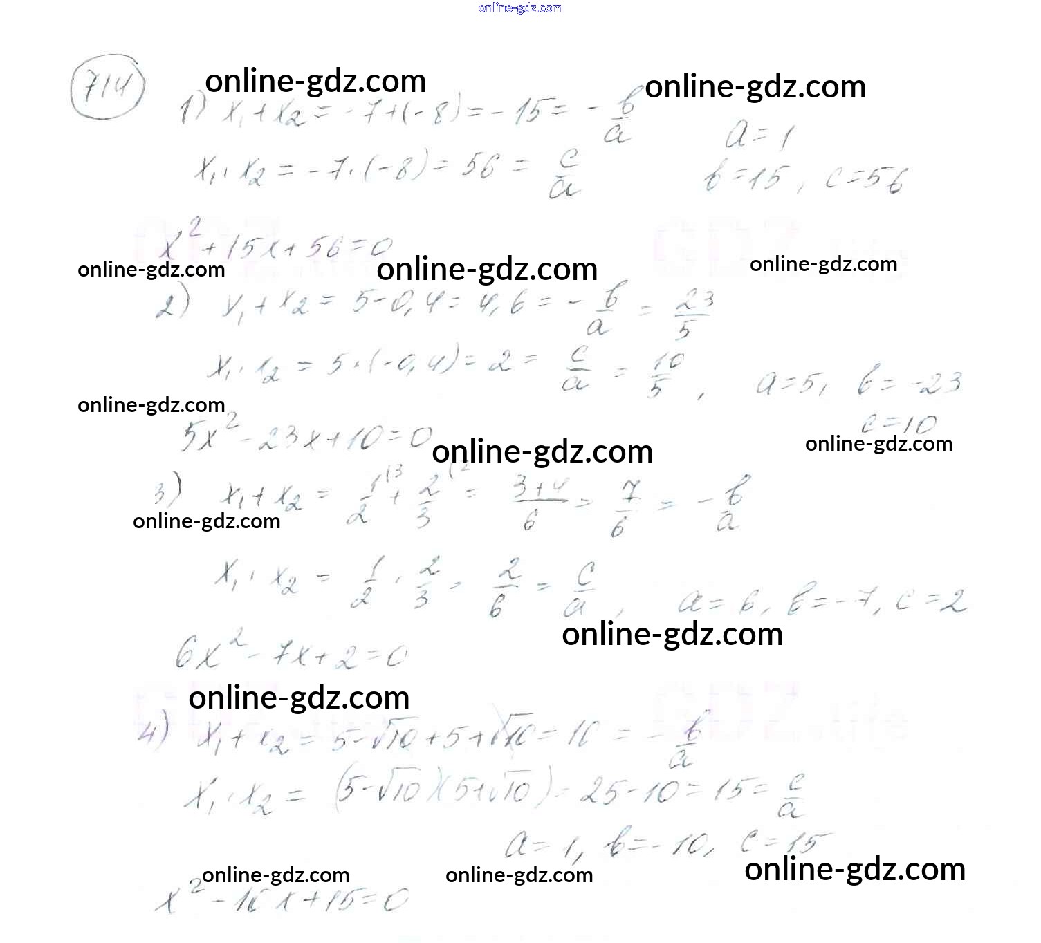 Готовые домашние задания по Алгебре за 8 класс Учебник Мерзляк, Полонский Алгоритм успеха 2016 - §21. Теорема Виета Глава 3. Квадратные уравнения 714
