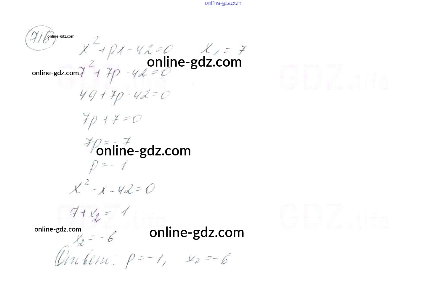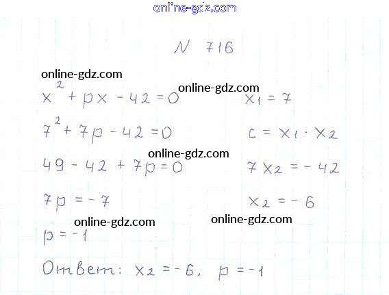 Готовые домашние задания по Алгебре за 8 класс Учебник Мерзляк, Полонский Алгоритм успеха 2016 - §21. Теорема Виета Глава 3. Квадратные уравнения 716