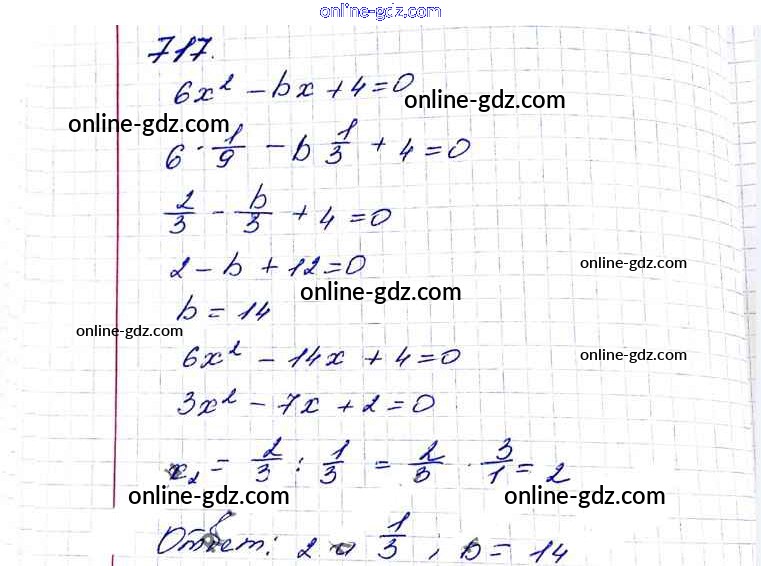 Готовые домашние задания по Алгебре за 8 класс Учебник Мерзляк, Полонский Алгоритм успеха 2016 - §21. Теорема Виета Глава 3. Квадратные уравнения 717