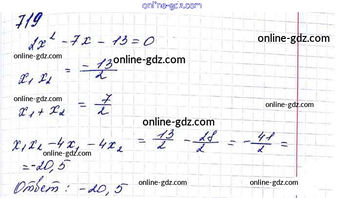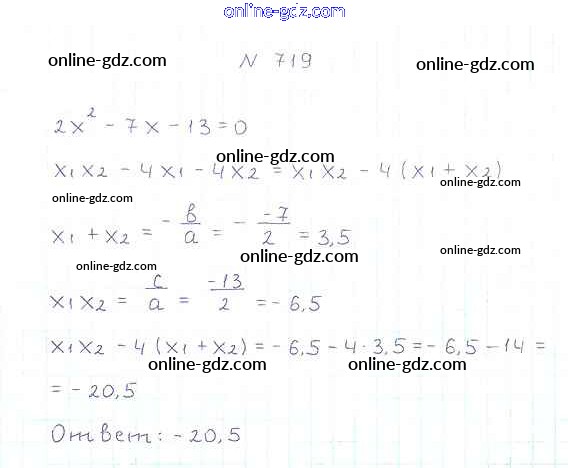 Готовые домашние задания по Алгебре за 8 класс Учебник Мерзляк, Полонский Алгоритм успеха 2016 - §21. Теорема Виета Глава 3. Квадратные уравнения 719