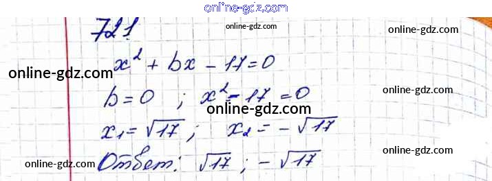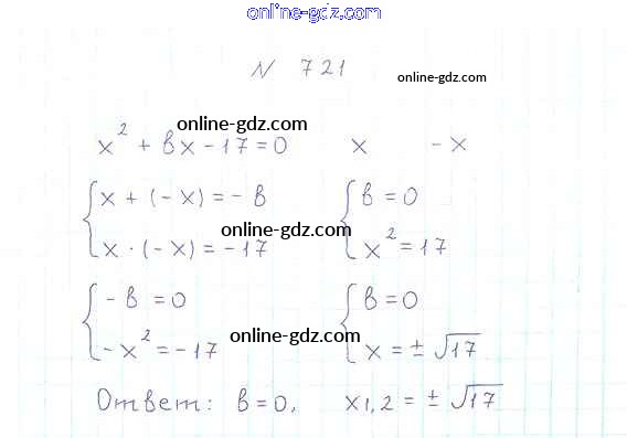 Готовые домашние задания по Алгебре за 8 класс Учебник Мерзляк, Полонский Алгоритм успеха 2016 - §21. Теорема Виета Глава 3. Квадратные уравнения 721
