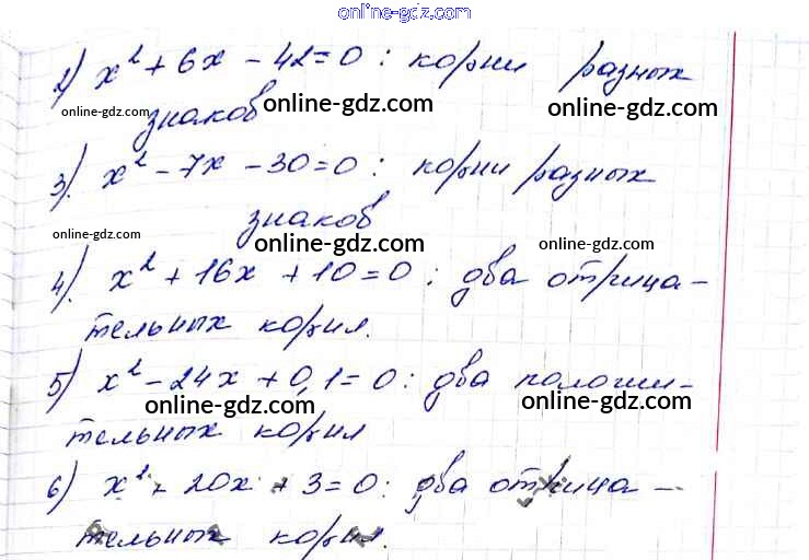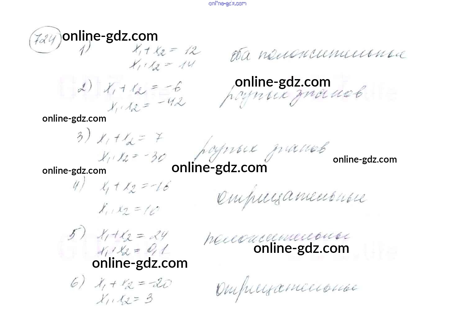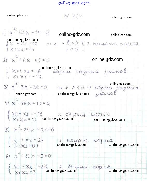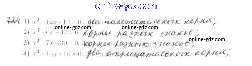 Готовые домашние задания по Алгебре за 8 класс Учебник Мерзляк, Полонский Алгоритм успеха 2016 - §21. Теорема Виета Глава 3. Квадратные уравнения 724
