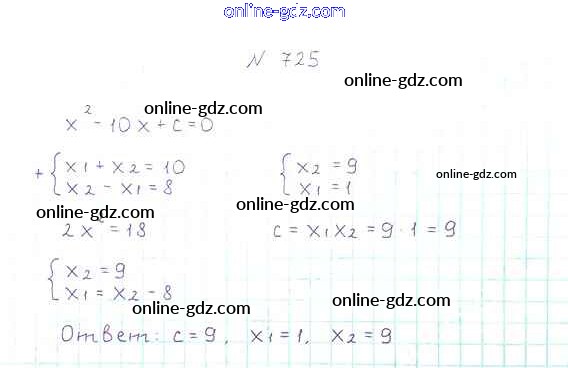 Готовые домашние задания по Алгебре за 8 класс Учебник Мерзляк, Полонский Алгоритм успеха 2016 - §21. Теорема Виета Глава 3. Квадратные уравнения 725