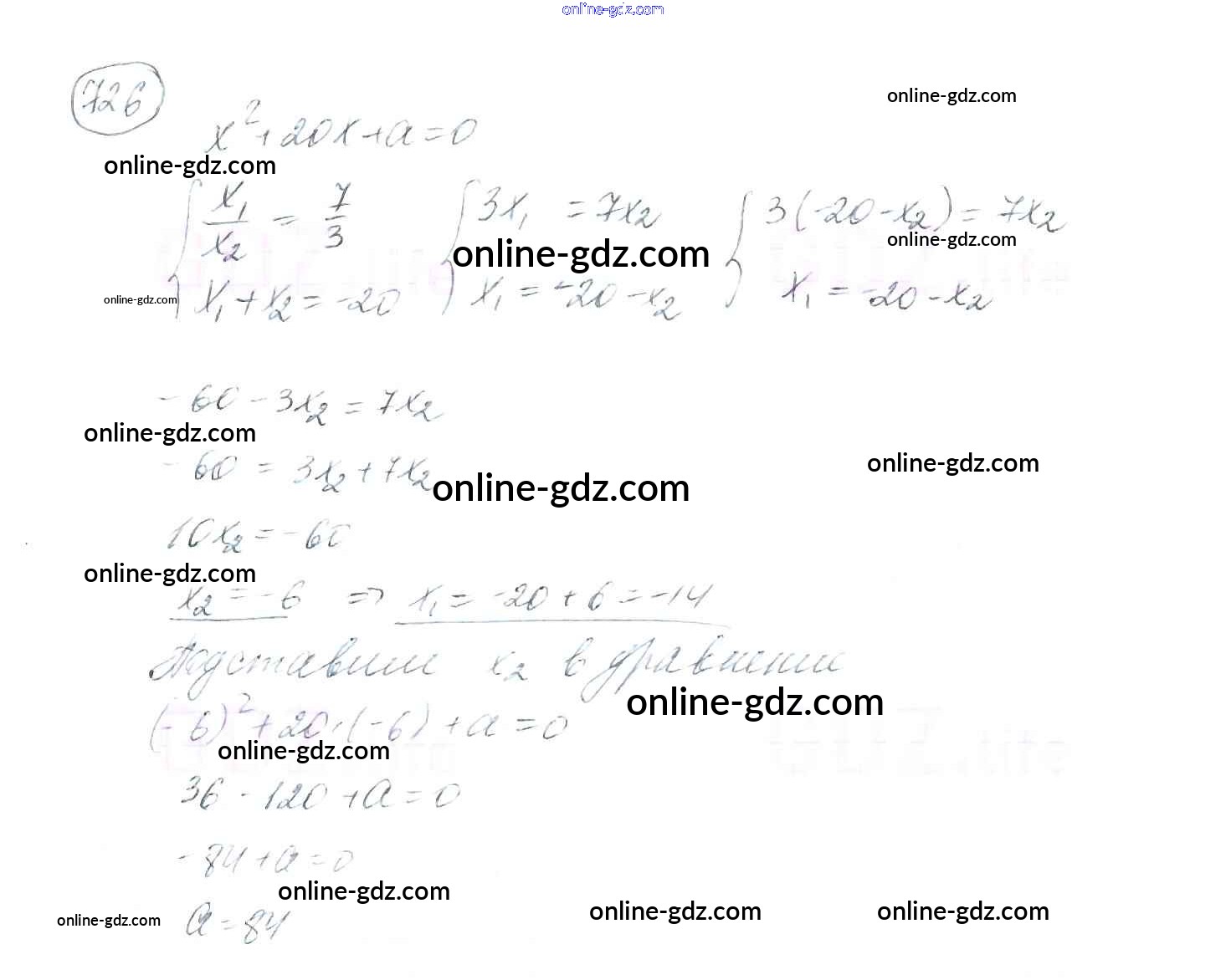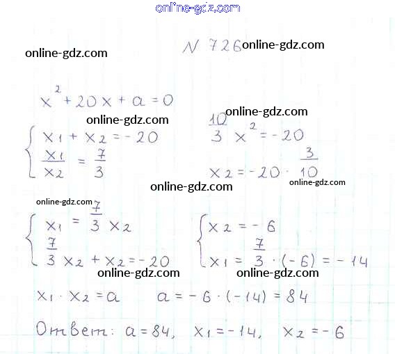 Готовые домашние задания по Алгебре за 8 класс Учебник Мерзляк, Полонский Алгоритм успеха 2016 - §21. Теорема Виета Глава 3. Квадратные уравнения 726