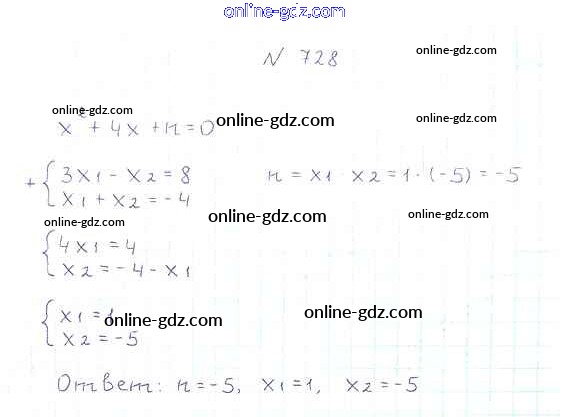 Готовые домашние задания по Алгебре за 8 класс Учебник Мерзляк, Полонский Алгоритм успеха 2016 - §21. Теорема Виета Глава 3. Квадратные уравнения 728