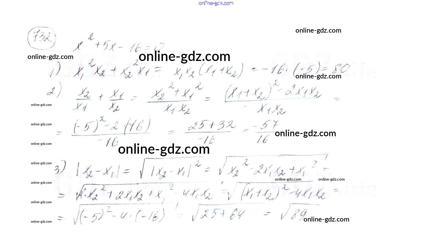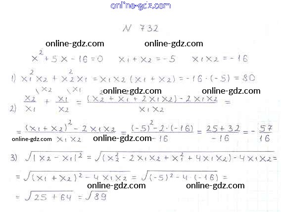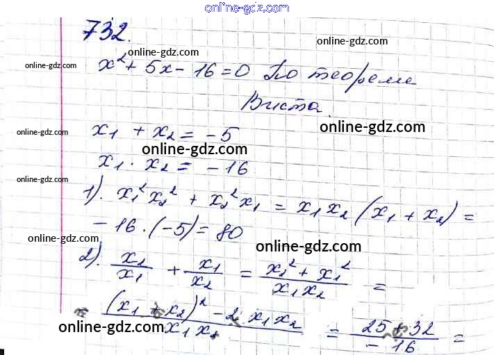 Готовые домашние задания по Алгебре за 8 класс Учебник Мерзляк, Полонский Алгоритм успеха 2016 - §21. Теорема Виета Глава 3. Квадратные уравнения 732