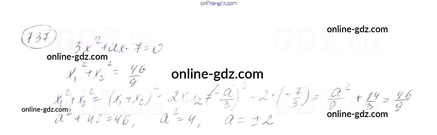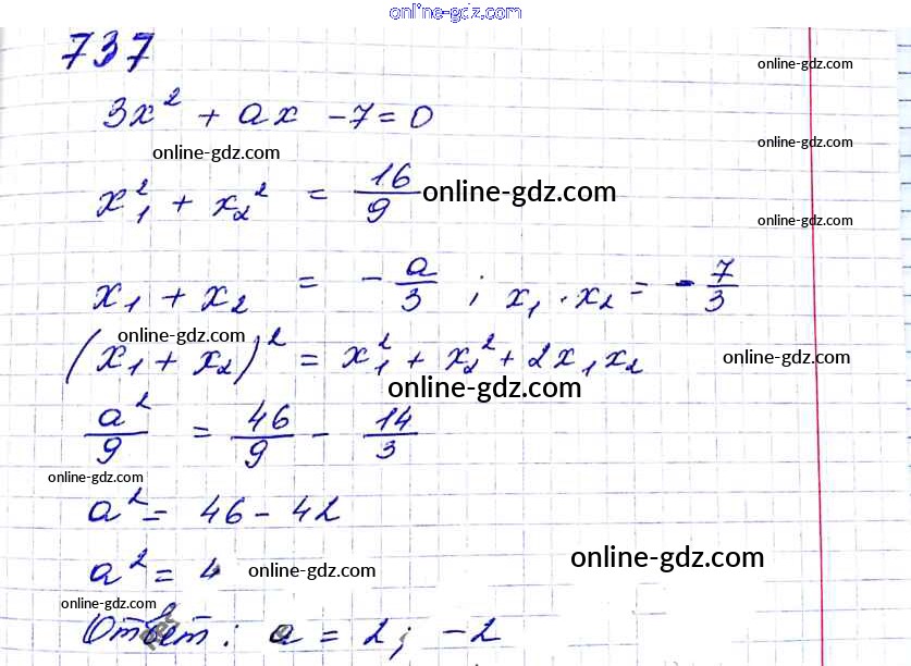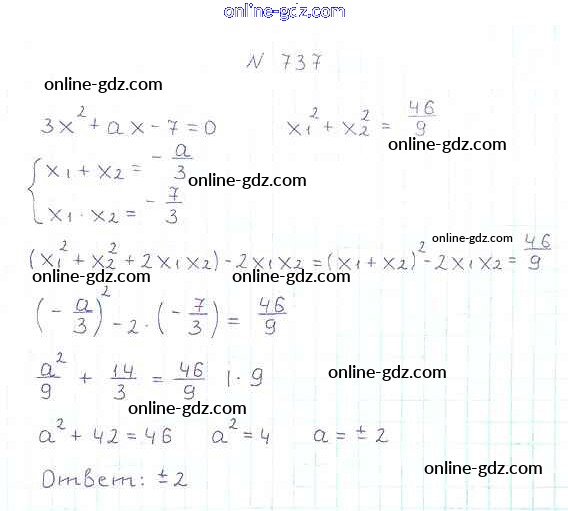 Готовые домашние задания по Алгебре за 8 класс Учебник Мерзляк, Полонский Алгоритм успеха 2016 - §21. Теорема Виета Глава 3. Квадратные уравнения 737