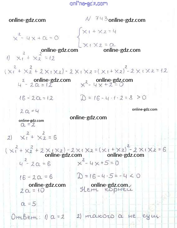 Готовые домашние задания по Алгебре за 8 класс Учебник Мерзляк, Полонский Алгоритм успеха 2016 - §21. Теорема Виета Глава 3. Квадратные уравнения 743