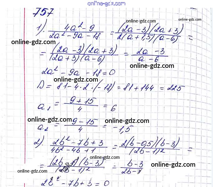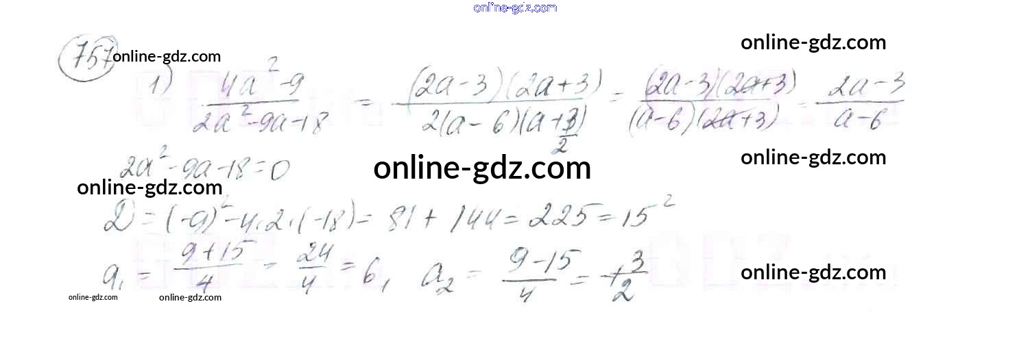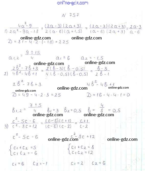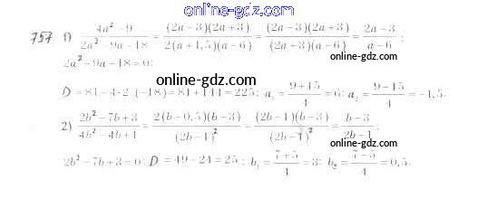 Готовые домашние задания по Алгебре за 8 класс Учебник Мерзляк, Полонский Алгоритм успеха 2016 - §22. Квадратный трёхчлен Глава 3. Квадратные уравнения 757