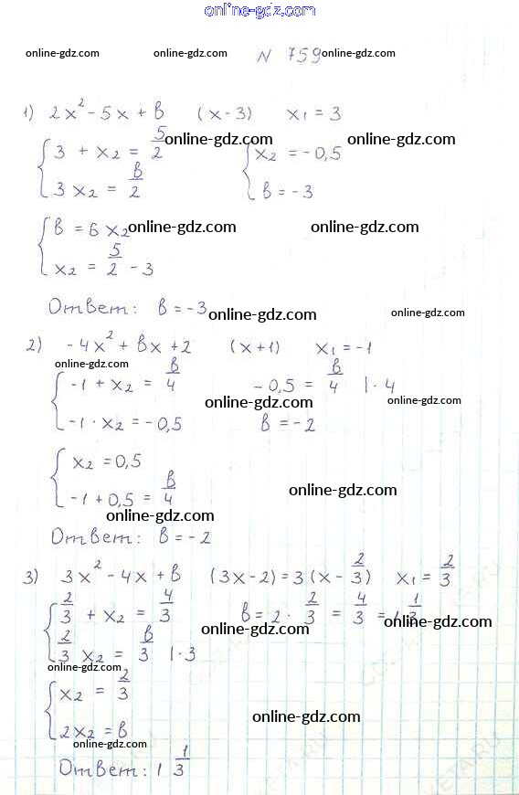 Готовые домашние задания по Алгебре за 8 класс Учебник Мерзляк, Полонский Алгоритм успеха 2016 - §22. Квадратный трёхчлен Глава 3. Квадратные уравнения 759