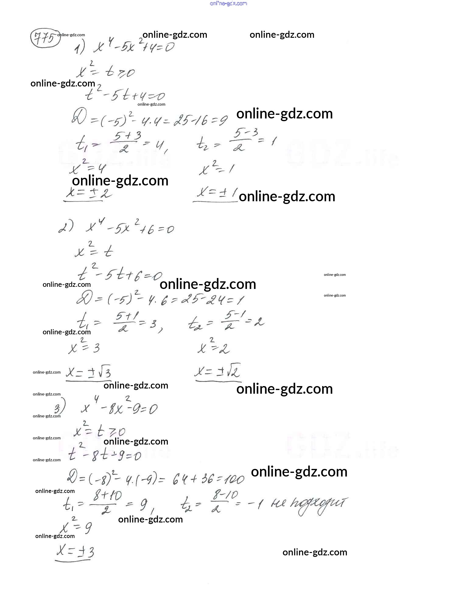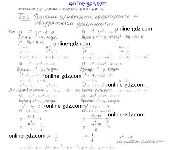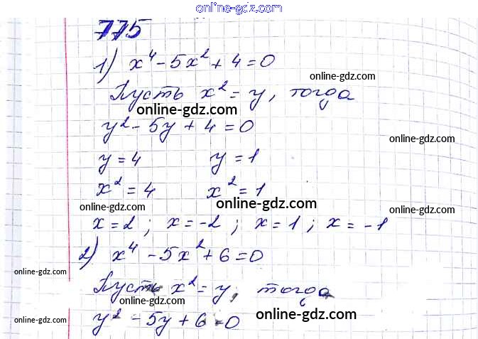 Готовые домашние задания по Алгебре за 8 класс Учебник Мерзляк, Полонский Алгоритм успеха 2016 - §23. Решение уравнений, сводящихся к квадратным уравнениям Глава 3. Квадратные уравнения 775
