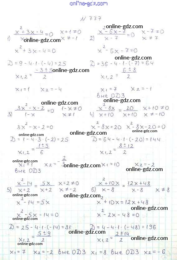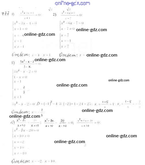 Готовые домашние задания по Алгебре за 8 класс Учебник Мерзляк, Полонский Алгоритм успеха 2016 - §23. Решение уравнений, сводящихся к квадратным уравнениям Глава 3. Квадратные уравнения 777