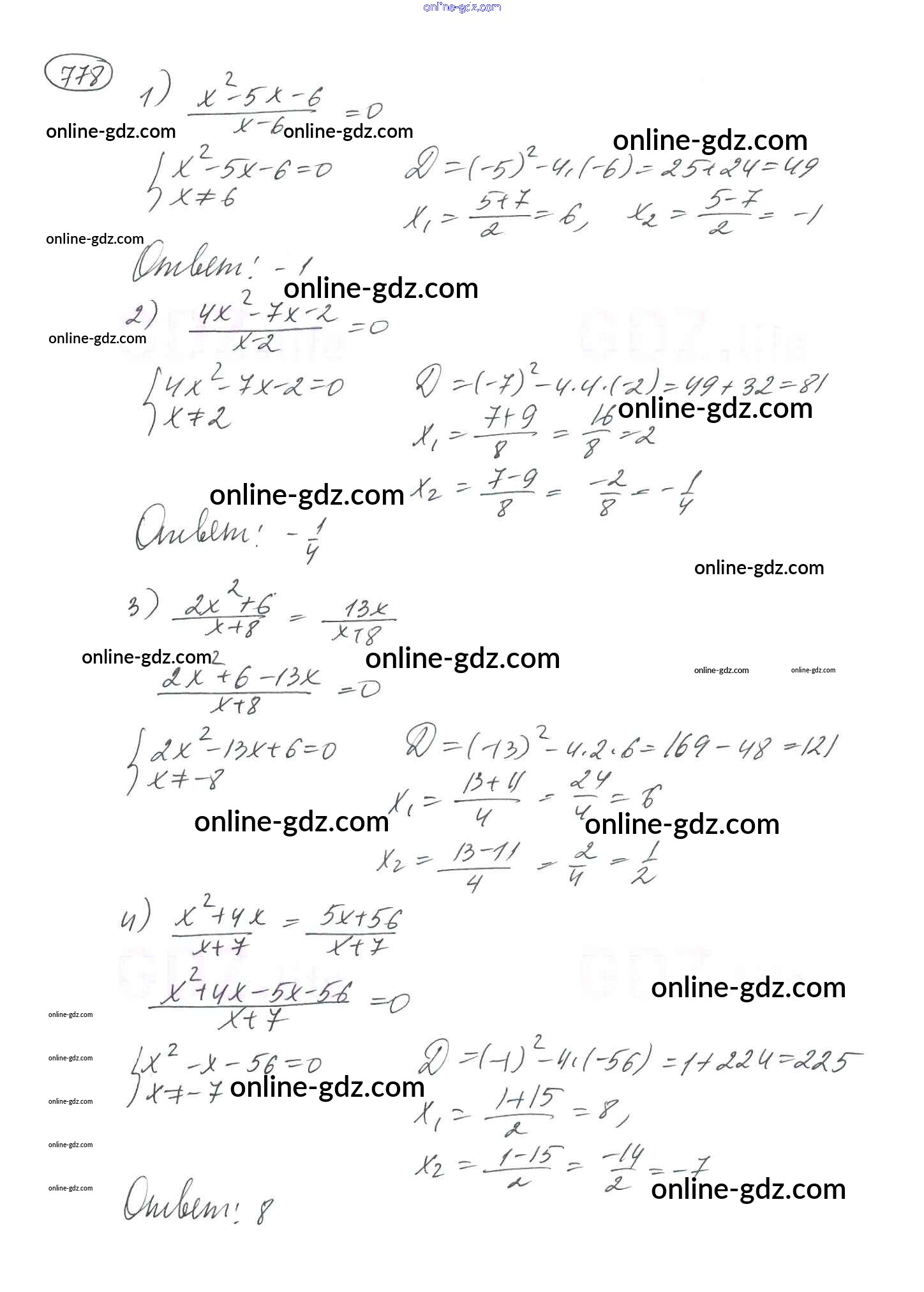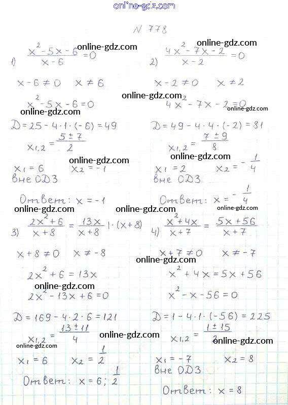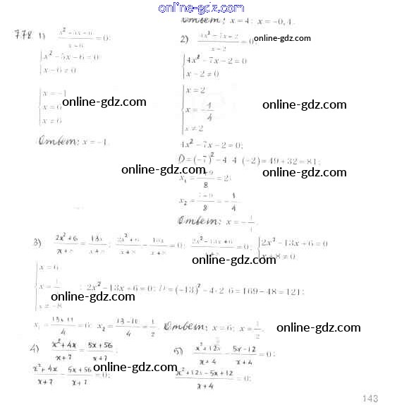 Готовые домашние задания по Алгебре за 8 класс Учебник Мерзляк, Полонский Алгоритм успеха 2016 - §23. Решение уравнений, сводящихся к квадратным уравнениям Глава 3. Квадратные уравнения 778