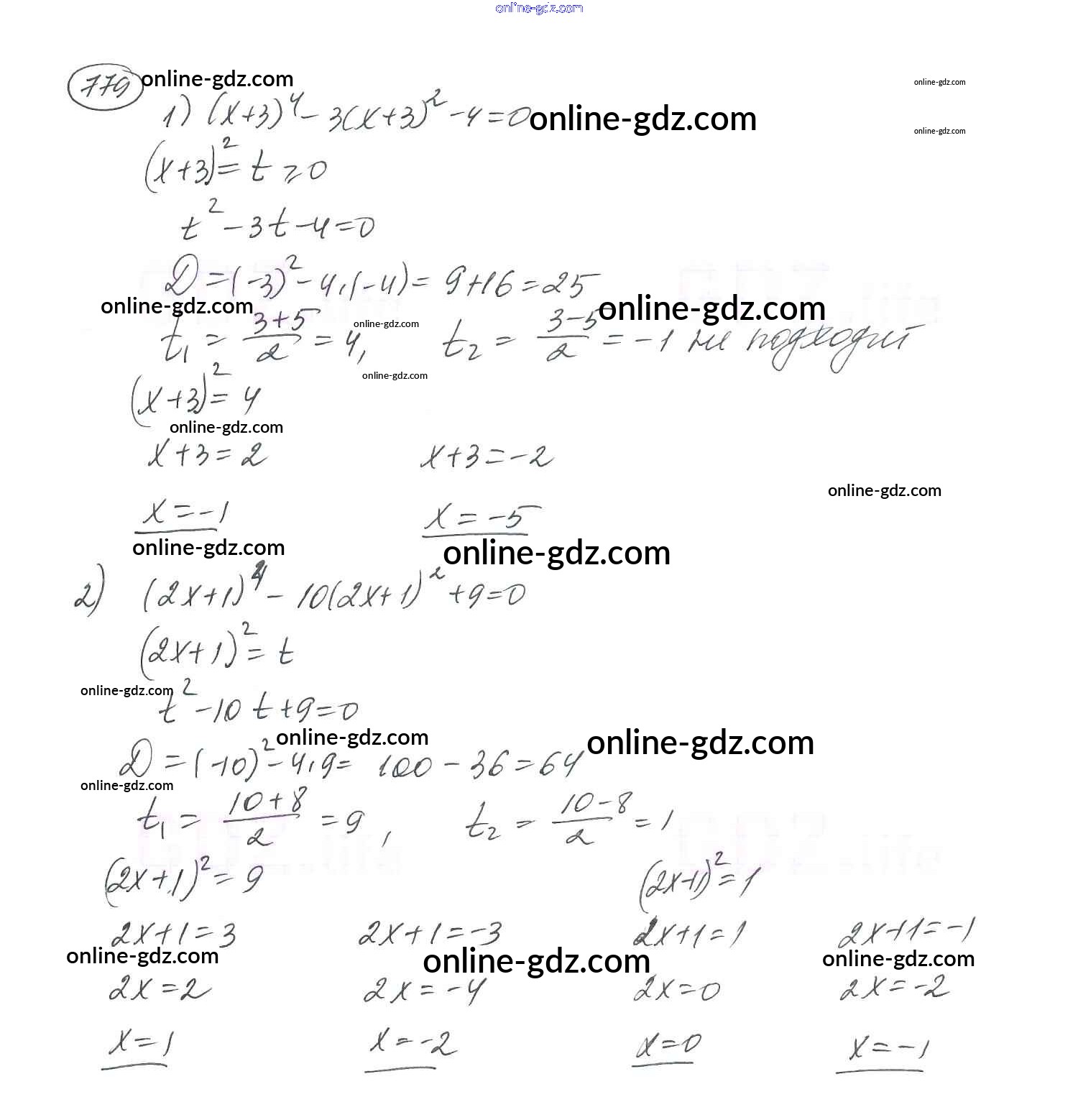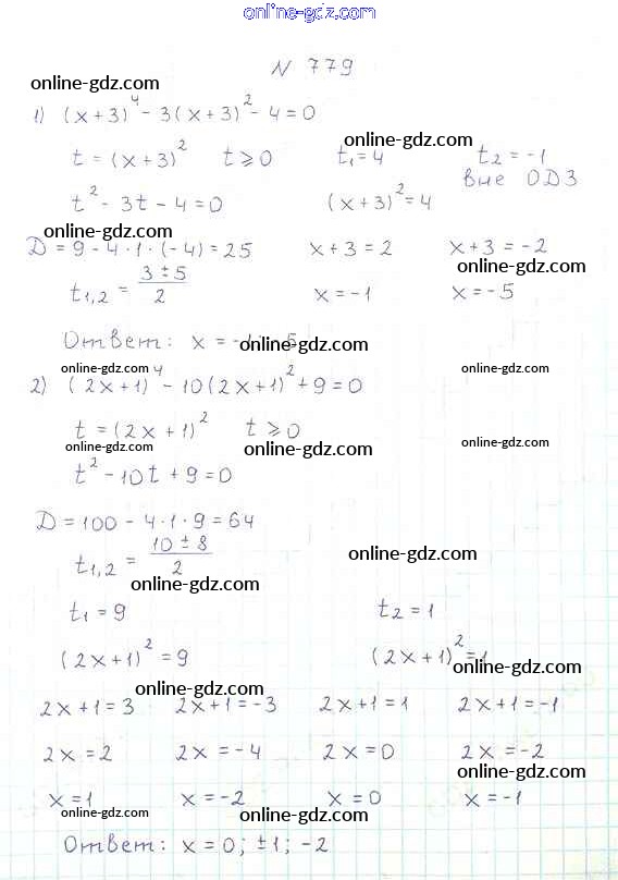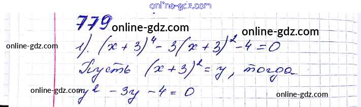 Готовые домашние задания по Алгебре за 8 класс Учебник Мерзляк, Полонский Алгоритм успеха 2016 - §23. Решение уравнений, сводящихся к квадратным уравнениям Глава 3. Квадратные уравнения 779