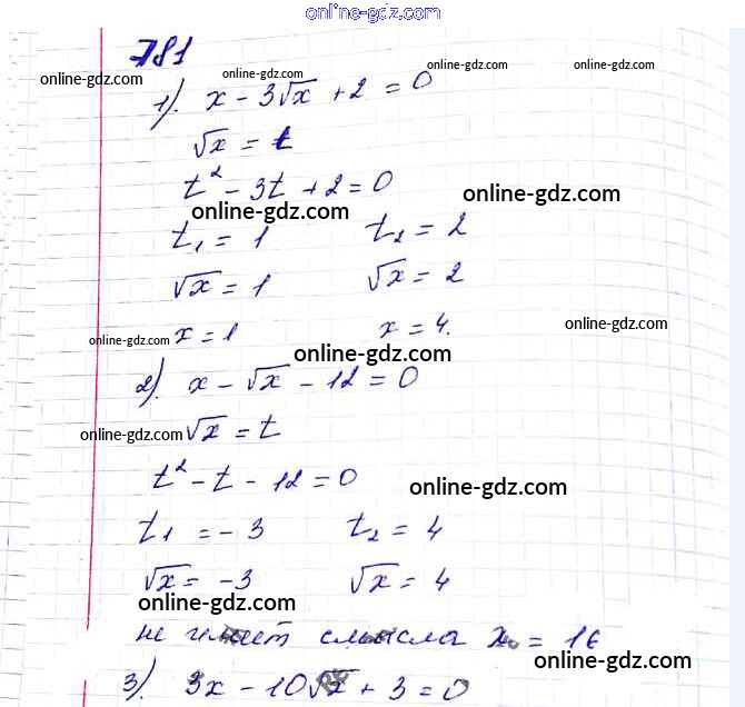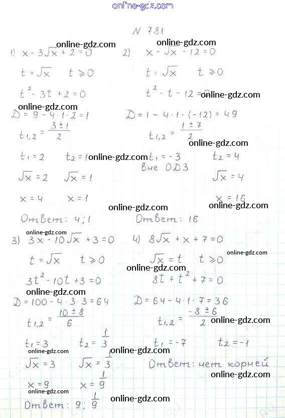 Готовые домашние задания по Алгебре за 8 класс Учебник Мерзляк, Полонский Алгоритм успеха 2016 - §23. Решение уравнений, сводящихся к квадратным уравнениям Глава 3. Квадратные уравнения 781