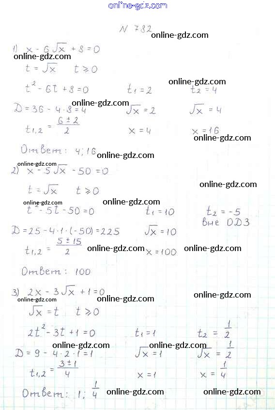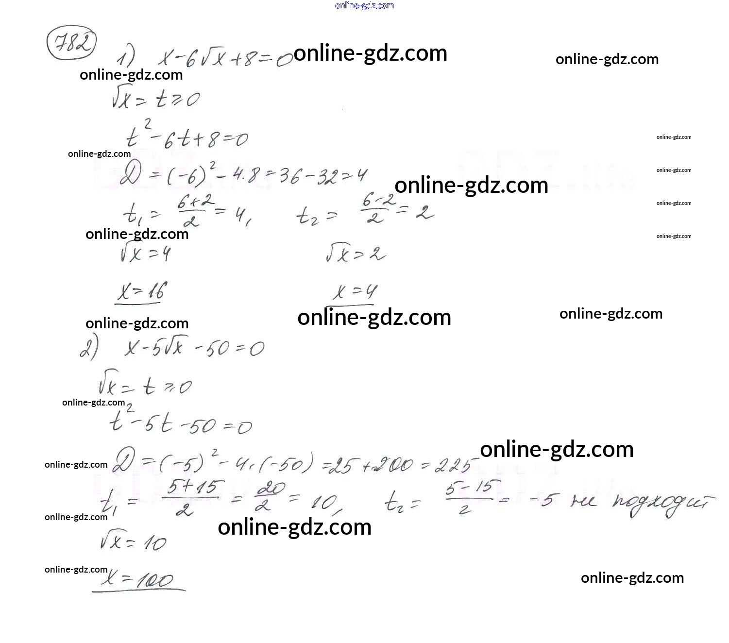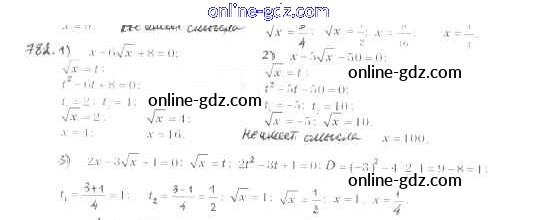 Готовые домашние задания по Алгебре за 8 класс Учебник Мерзляк, Полонский Алгоритм успеха 2016 - §23. Решение уравнений, сводящихся к квадратным уравнениям Глава 3. Квадратные уравнения 782