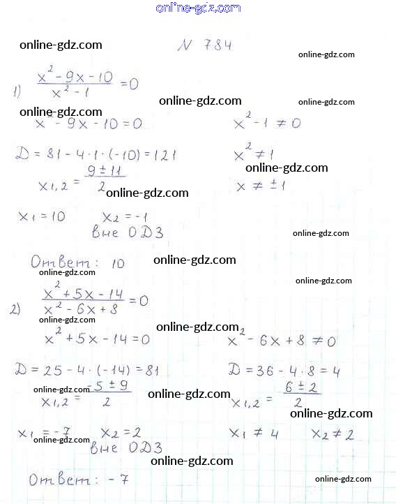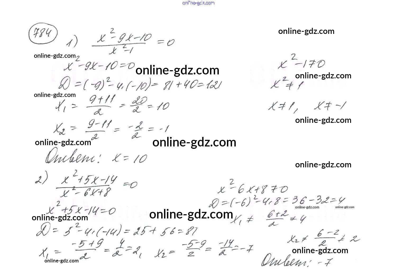 Готовые домашние задания по Алгебре за 8 класс Учебник Мерзляк, Полонский Алгоритм успеха 2016 - §23. Решение уравнений, сводящихся к квадратным уравнениям Глава 3. Квадратные уравнения 784