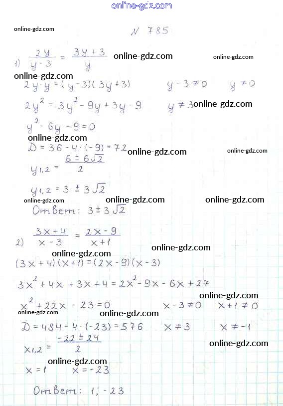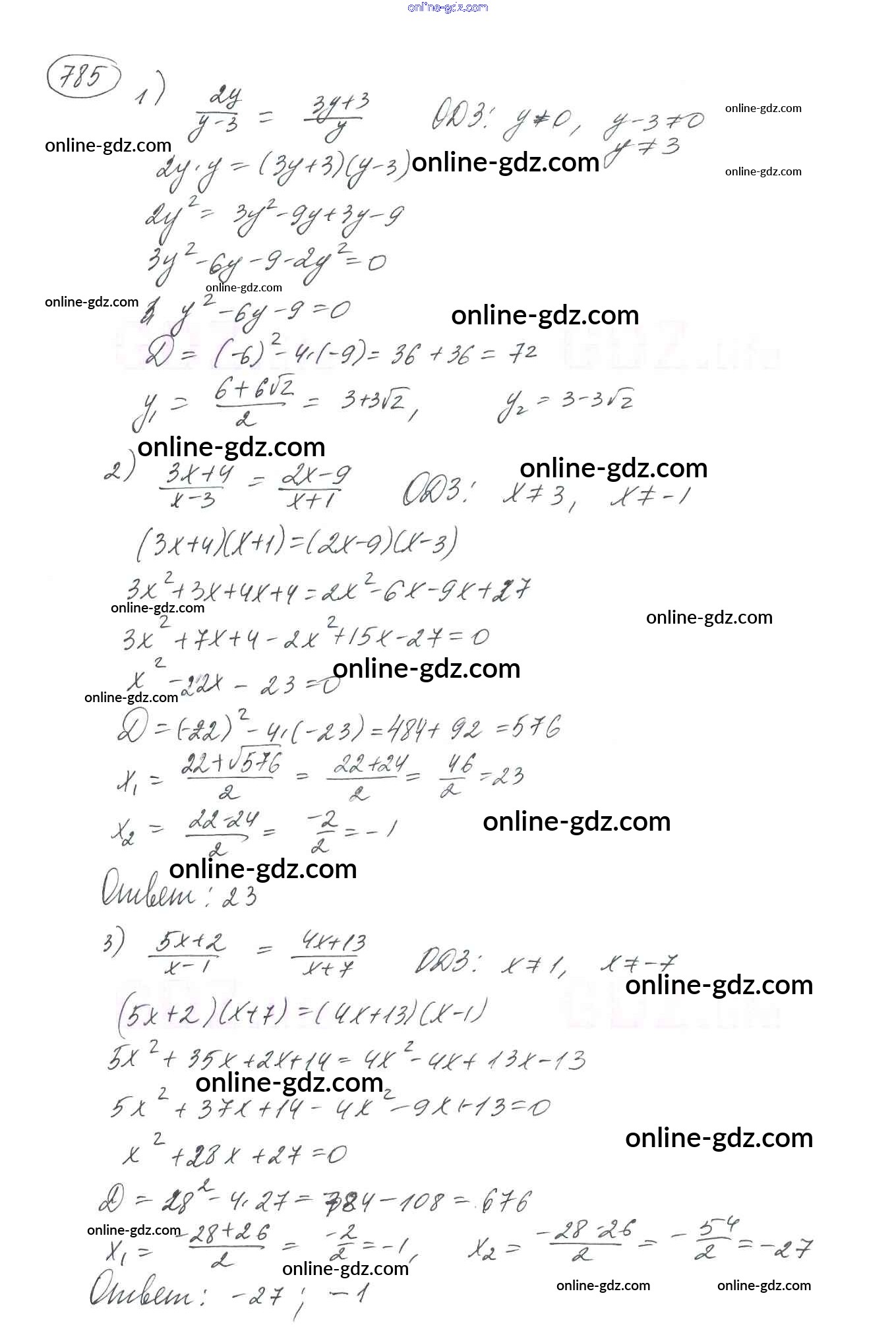 Готовые домашние задания по Алгебре за 8 класс Учебник Мерзляк, Полонский Алгоритм успеха 2016 - §23. Решение уравнений, сводящихся к квадратным уравнениям Глава 3. Квадратные уравнения 785