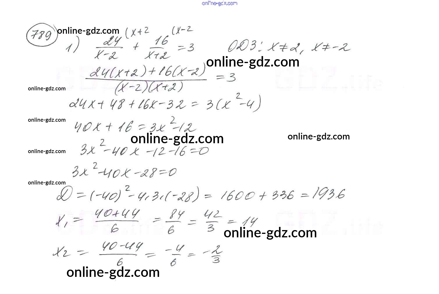Готовые домашние задания по Алгебре за 8 класс Учебник Мерзляк, Полонский Алгоритм успеха 2016 - §23. Решение уравнений, сводящихся к квадратным уравнениям Глава 3. Квадратные уравнения 789