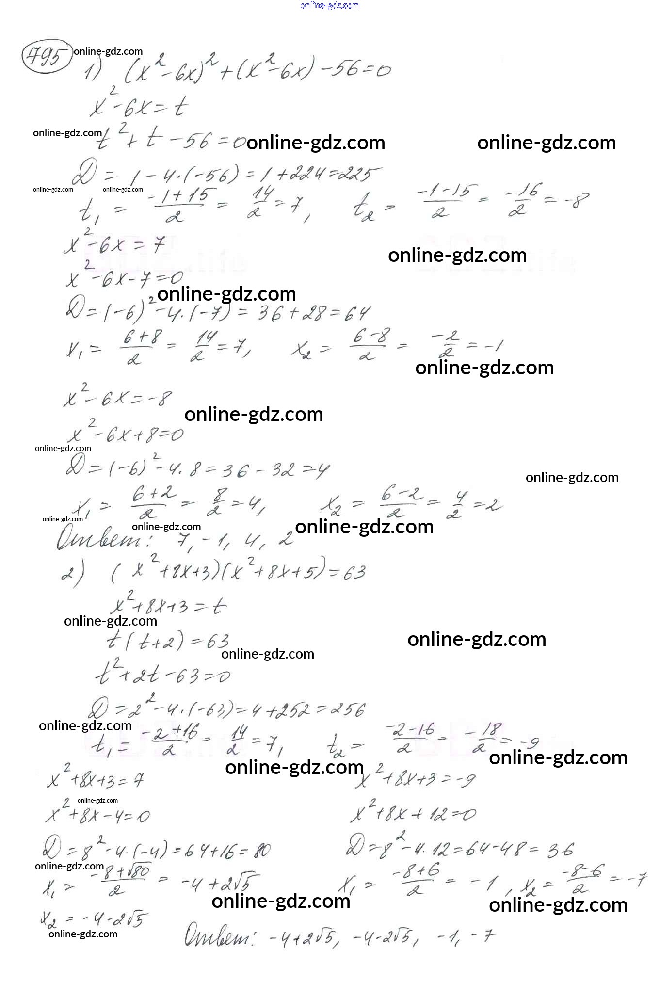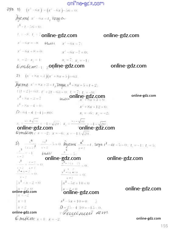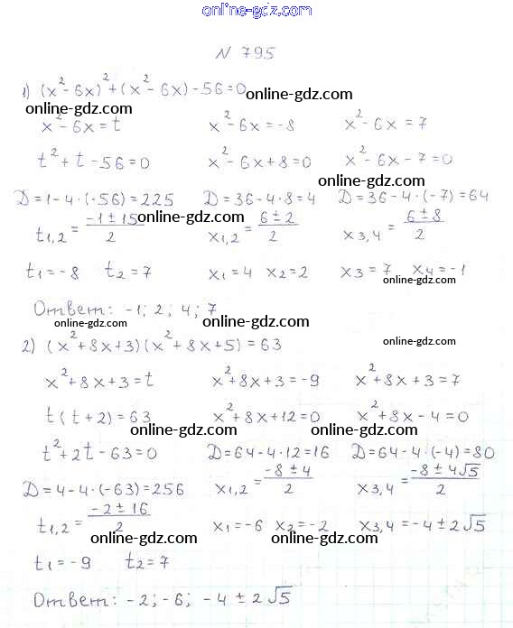 Готовые домашние задания по Алгебре за 8 класс Учебник Мерзляк, Полонский Алгоритм успеха 2016 - §23. Решение уравнений, сводящихся к квадратным уравнениям Глава 3. Квадратные уравнения 795