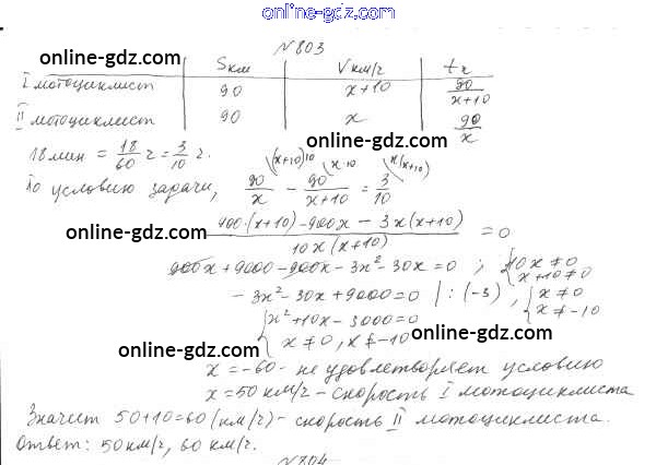 Готовые домашние задания по Алгебре за 8 класс Учебник Мерзляк, Полонский Алгоритм успеха 2016 - §24. Рациональные уравнения как математические модели реальных ситуаций Глава 3. Квадратные уравнения 803