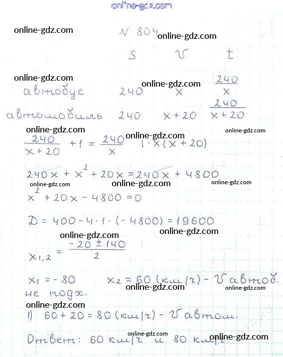 Готовые домашние задания по Алгебре за 8 класс Учебник Мерзляк, Полонский Алгоритм успеха 2016 - §24. Рациональные уравнения как математические модели реальных ситуаций Глава 3. Квадратные уравнения 804