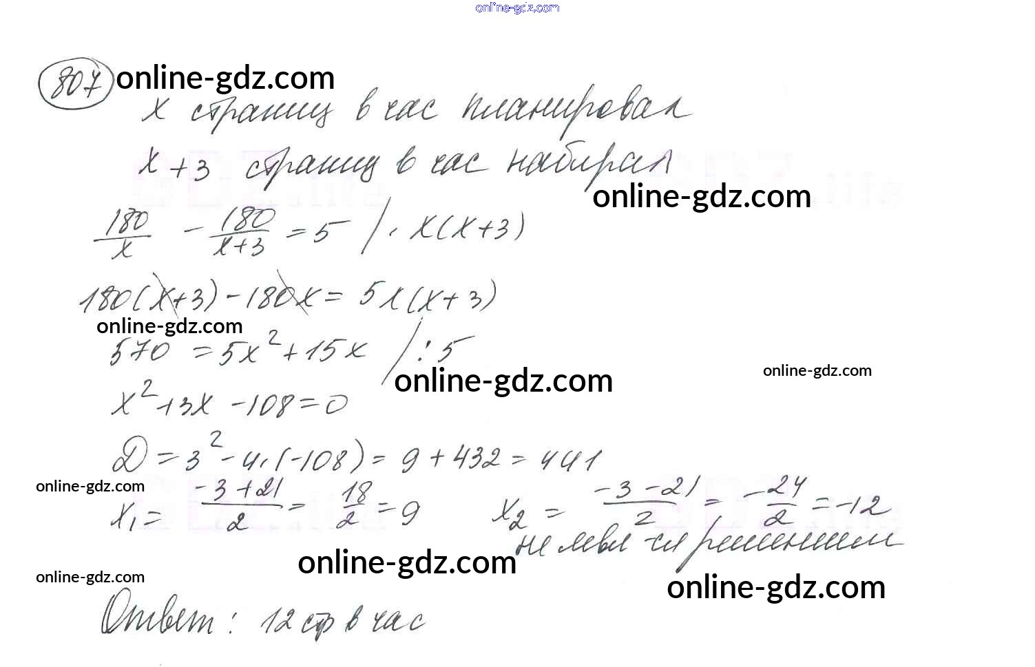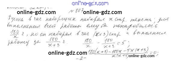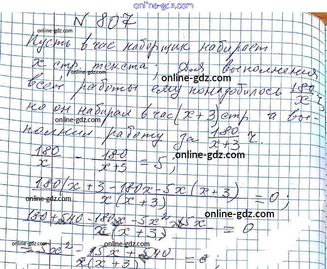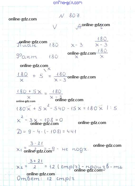 Готовые домашние задания по Алгебре за 8 класс Учебник Мерзляк, Полонский Алгоритм успеха 2016 - §24. Рациональные уравнения как математические модели реальных ситуаций Глава 3. Квадратные уравнения 807