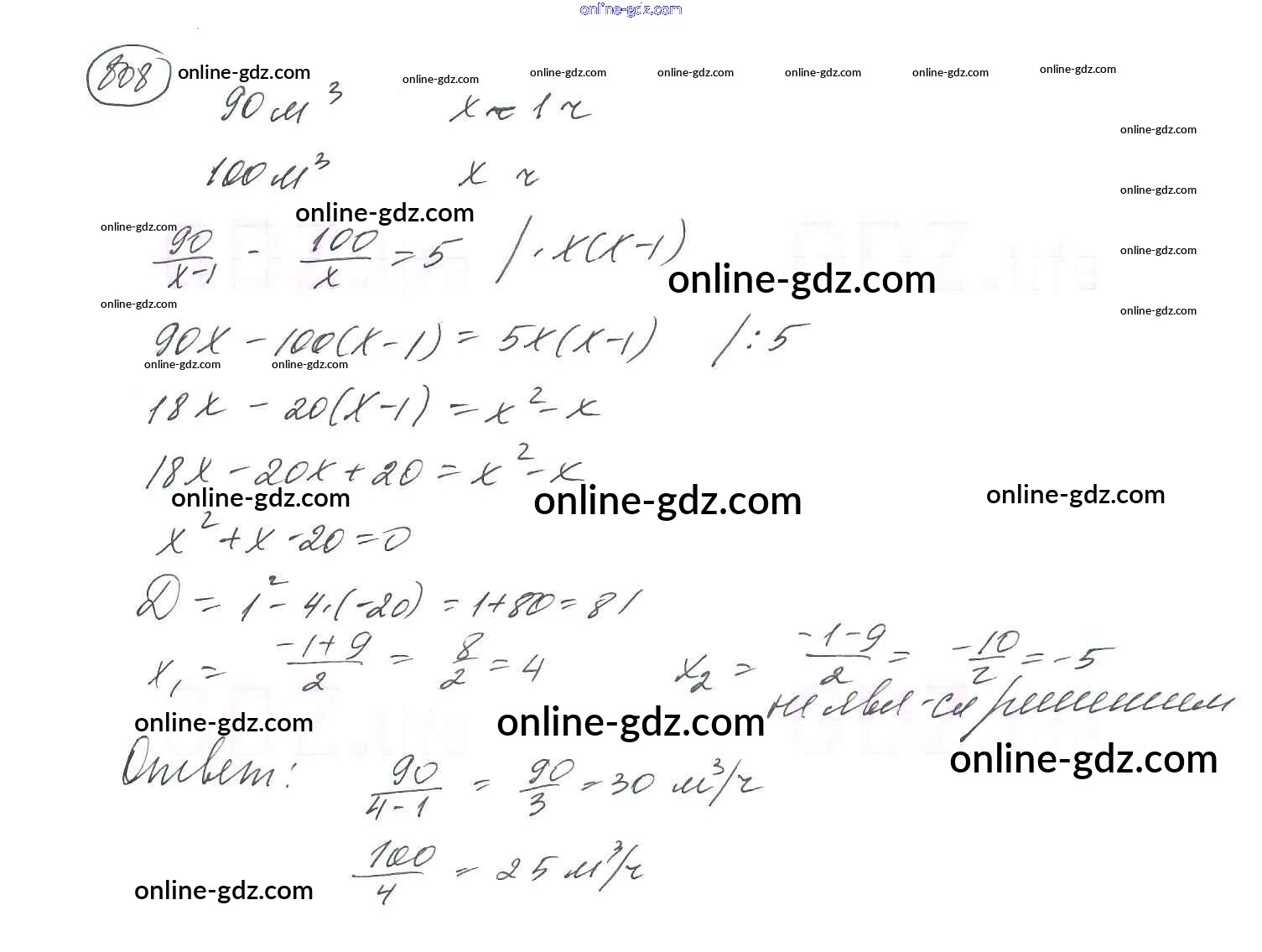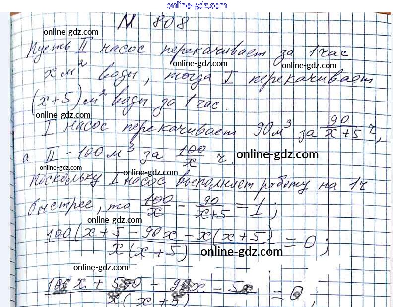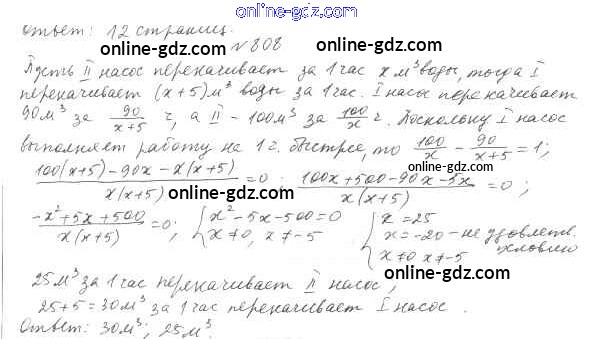 Готовые домашние задания по Алгебре за 8 класс Учебник Мерзляк, Полонский Алгоритм успеха 2016 - §24. Рациональные уравнения как математические модели реальных ситуаций Глава 3. Квадратные уравнения 808