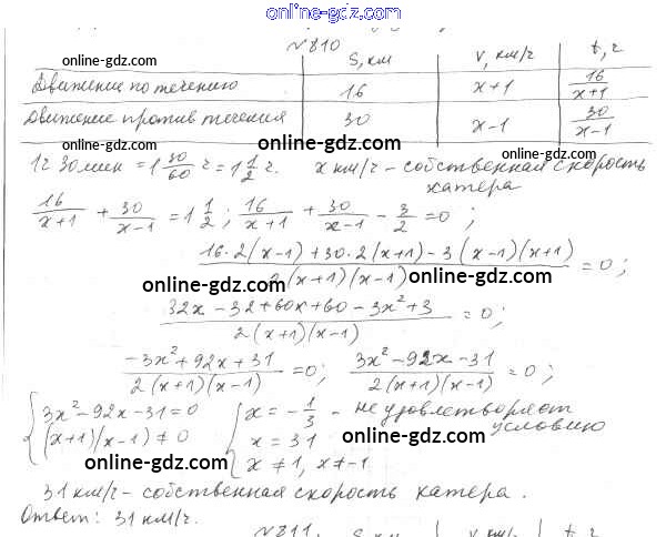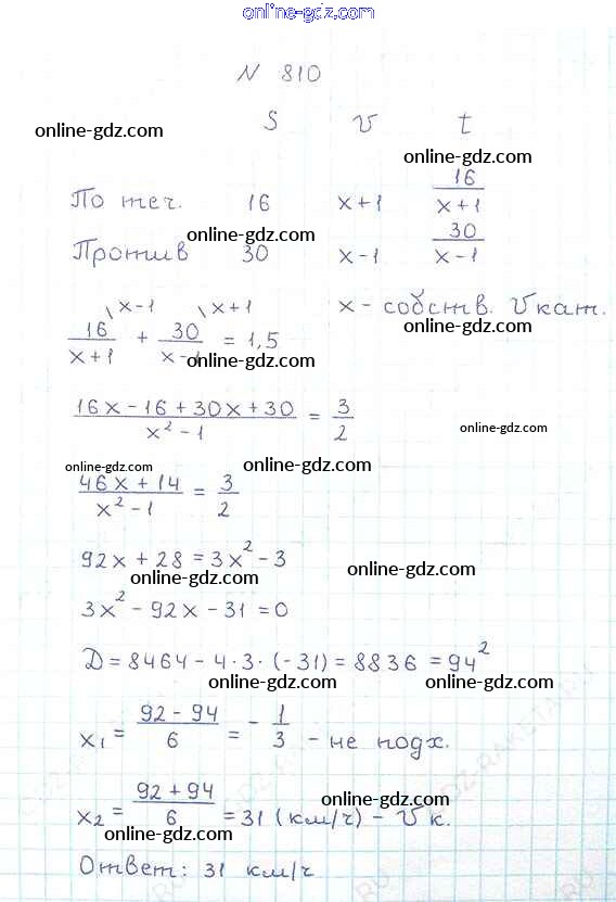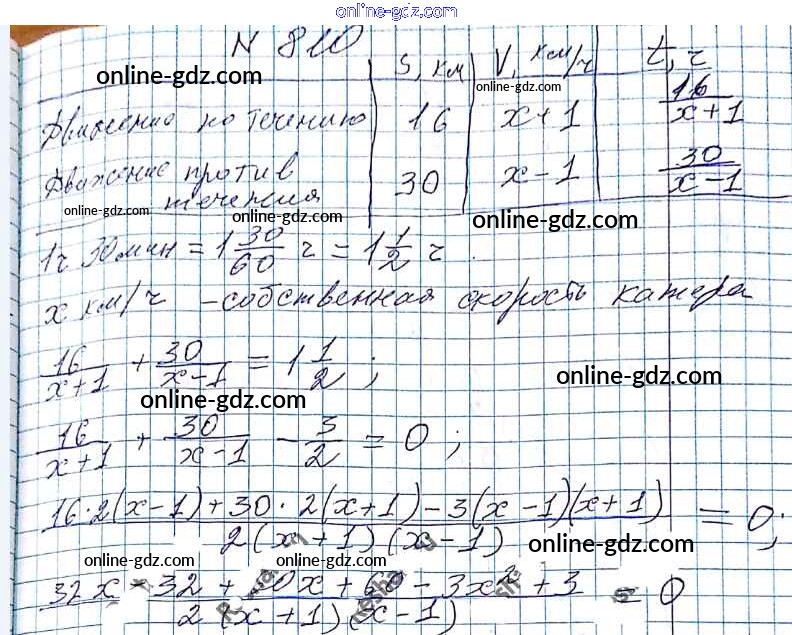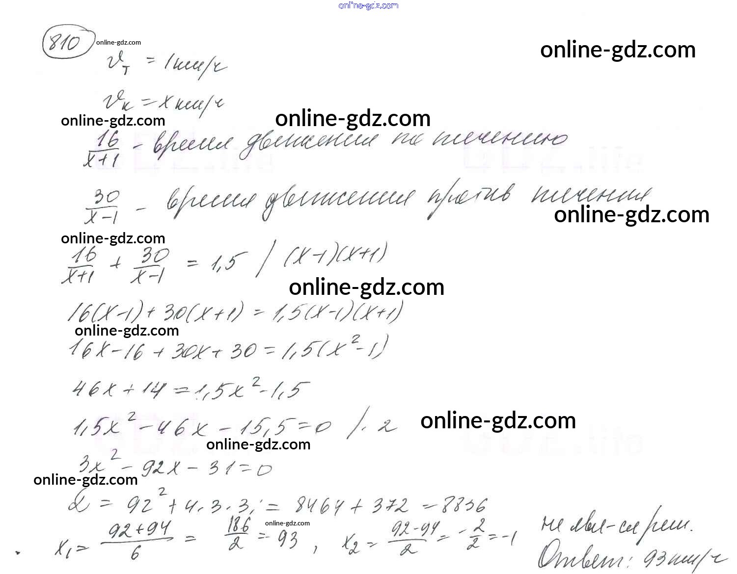Готовые домашние задания по Алгебре за 8 класс Учебник Мерзляк, Полонский Алгоритм успеха 2016 - §24. Рациональные уравнения как математические модели реальных ситуаций Глава 3. Квадратные уравнения 810