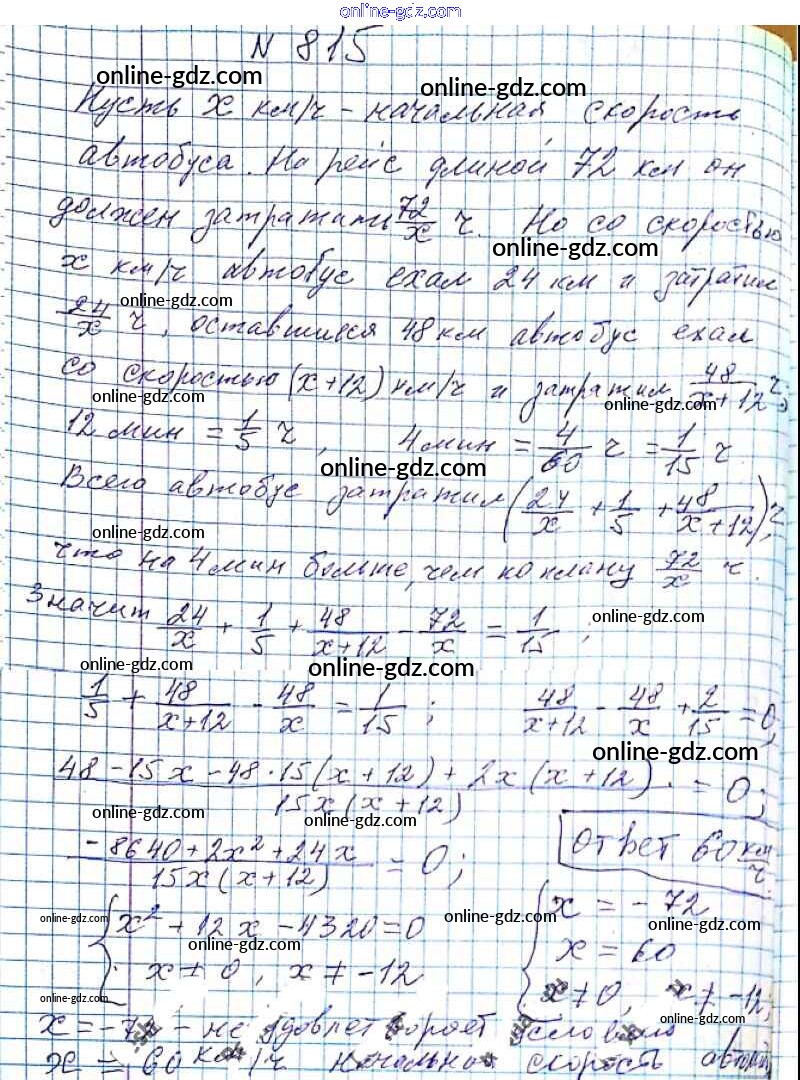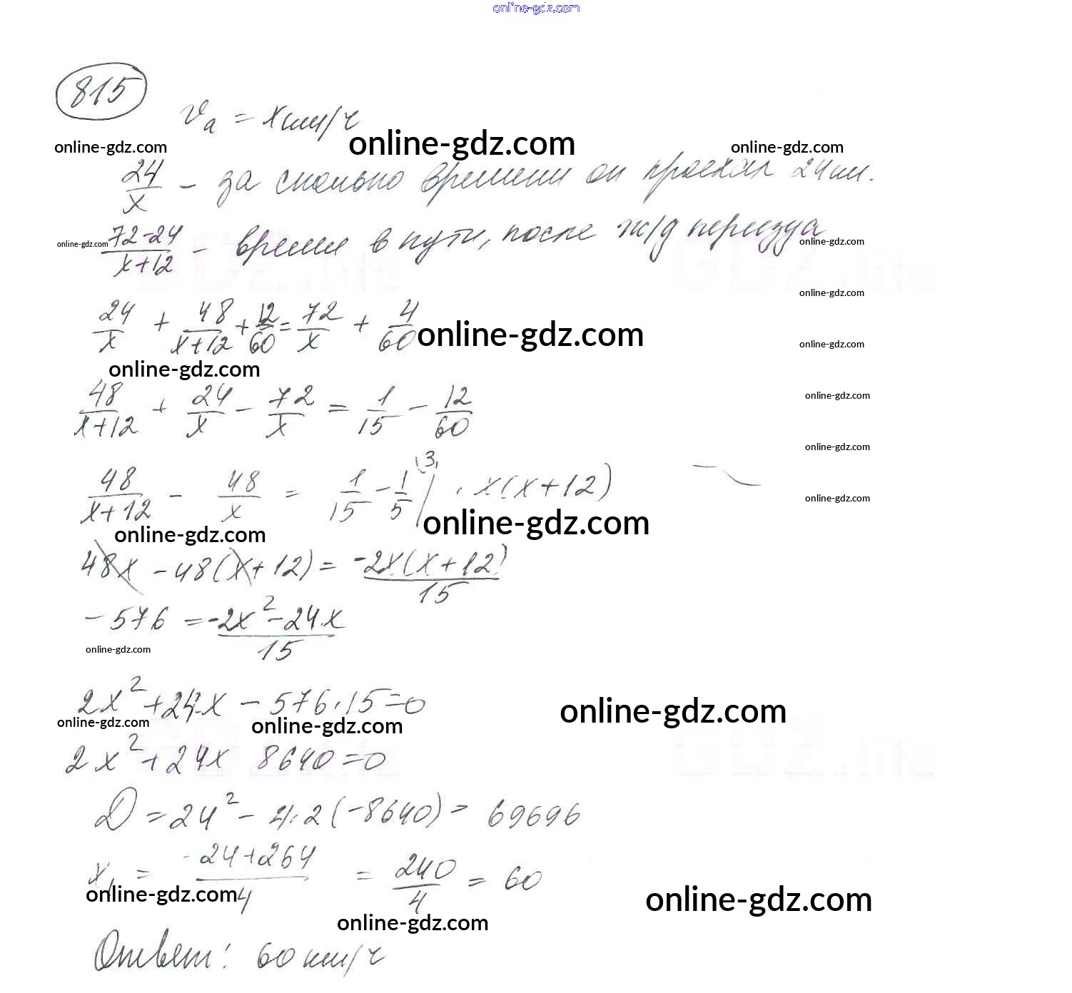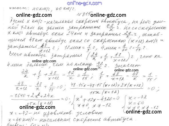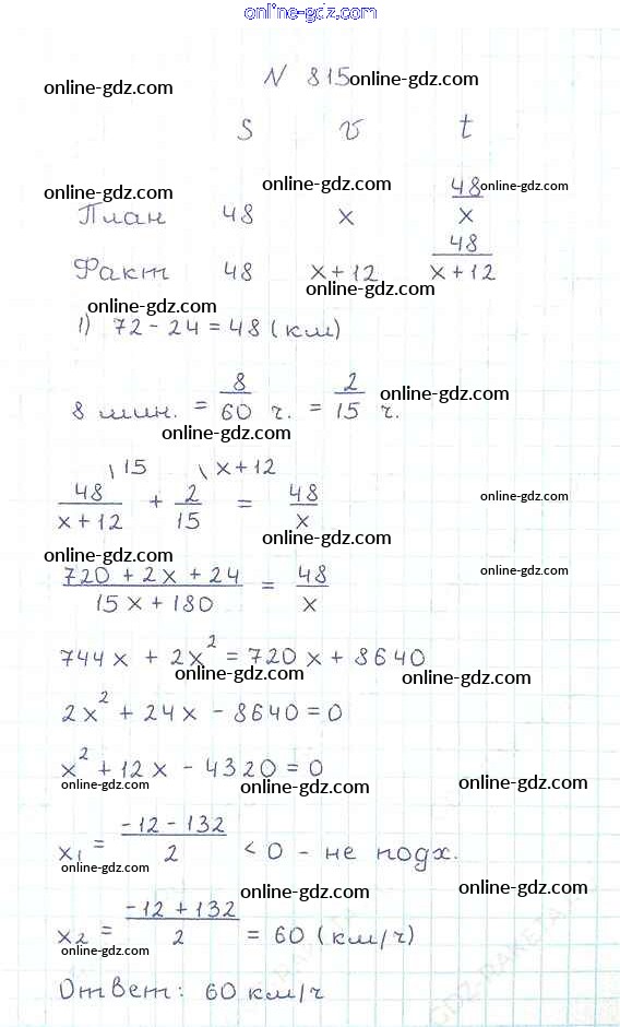 Готовые домашние задания по Алгебре за 8 класс Учебник Мерзляк, Полонский Алгоритм успеха 2016 - §24. Рациональные уравнения как математические модели реальных ситуаций Глава 3. Квадратные уравнения 815