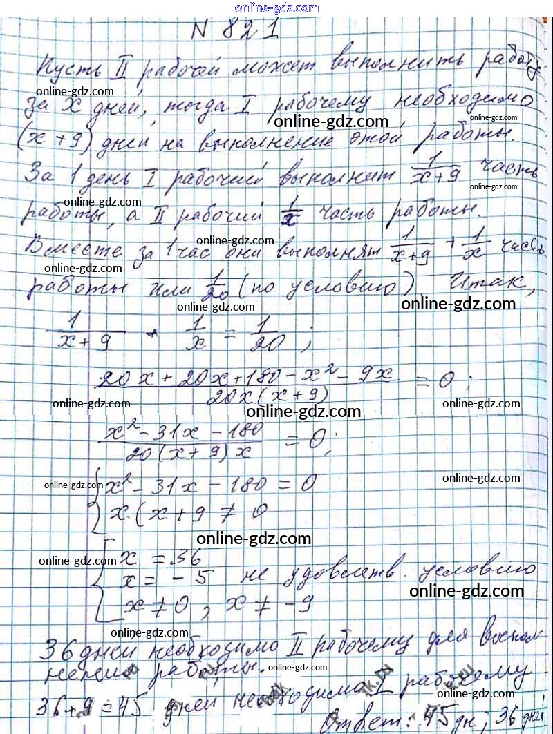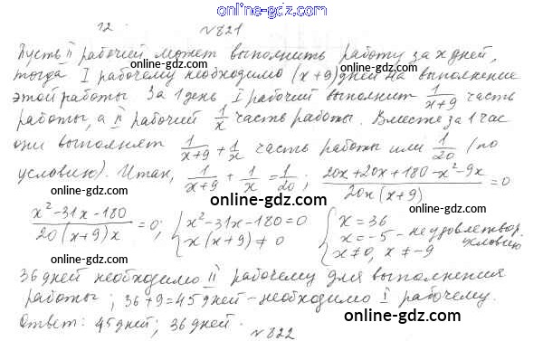 Готовые домашние задания по Алгебре за 8 класс Учебник Мерзляк, Полонский Алгоритм успеха 2016 - §24. Рациональные уравнения как математические модели реальных ситуаций Глава 3. Квадратные уравнения 821