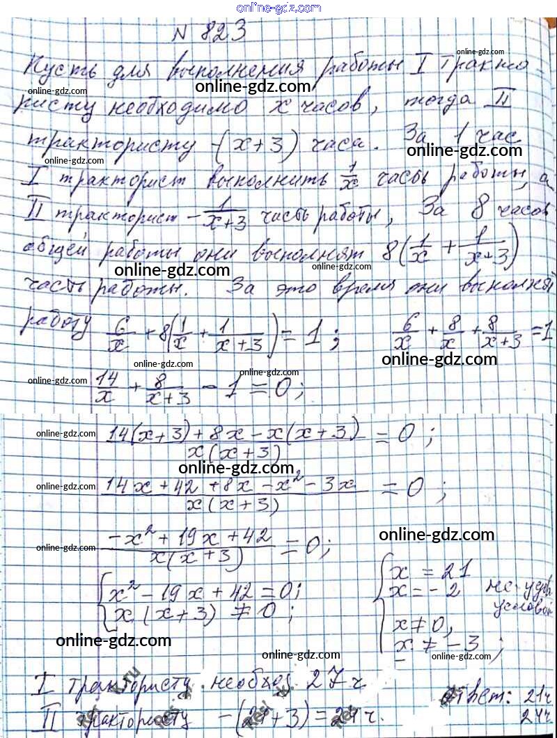 Готовые домашние задания по Алгебре за 8 класс Учебник Мерзляк, Полонский Алгоритм успеха 2016 - §24. Рациональные уравнения как математические модели реальных ситуаций Глава 3. Квадратные уравнения 823