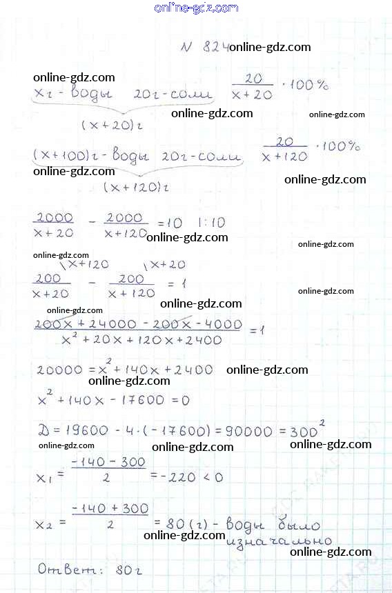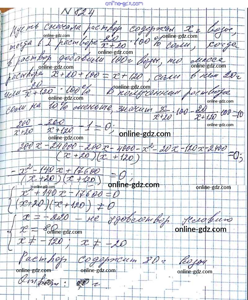 Готовые домашние задания по Алгебре за 8 класс Учебник Мерзляк, Полонский Алгоритм успеха 2016 - §24. Рациональные уравнения как математические модели реальных ситуаций Глава 3. Квадратные уравнения 824