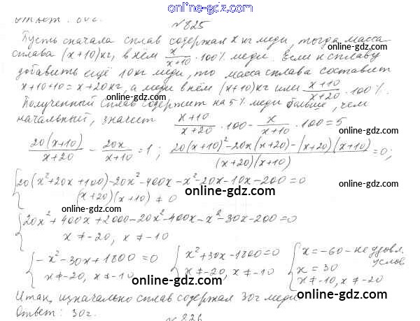 Готовые домашние задания по Алгебре за 8 класс Учебник Мерзляк, Полонский Алгоритм успеха 2016 - §24. Рациональные уравнения как математические модели реальных ситуаций Глава 3. Квадратные уравнения 825