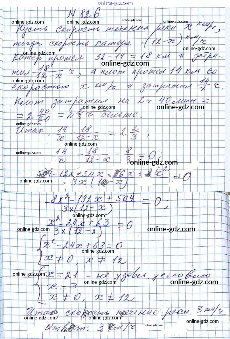 Готовые домашние задания по Алгебре за 8 класс Учебник Мерзляк, Полонский Алгоритм успеха 2016 - §24. Рациональные уравнения как математические модели реальных ситуаций Глава 3. Квадратные уравнения 826