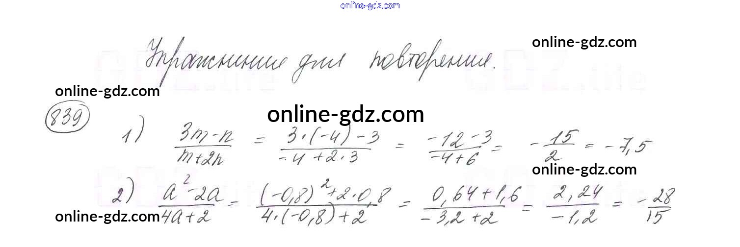 Готовые домашние задания по Алгебре за 8 класс Учебник Мерзляк, Полонский Алгоритм успеха 2016 - Упражнения для повторения курса алгебры 8 класса 839