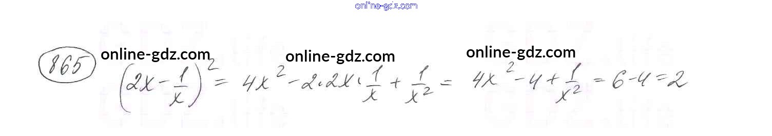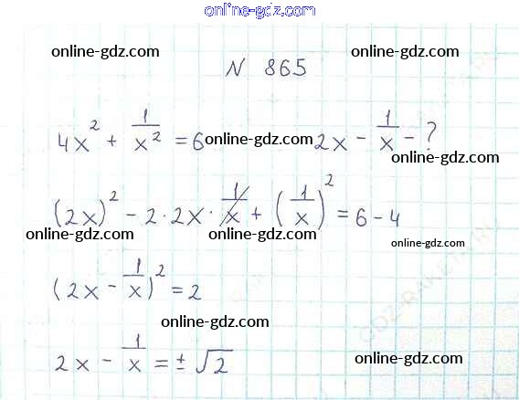Готовые домашние задания по Алгебре за 8 класс Учебник Мерзляк, Полонский Алгоритм успеха 2016 - Упражнения для повторения курса алгебры 8 класса 865