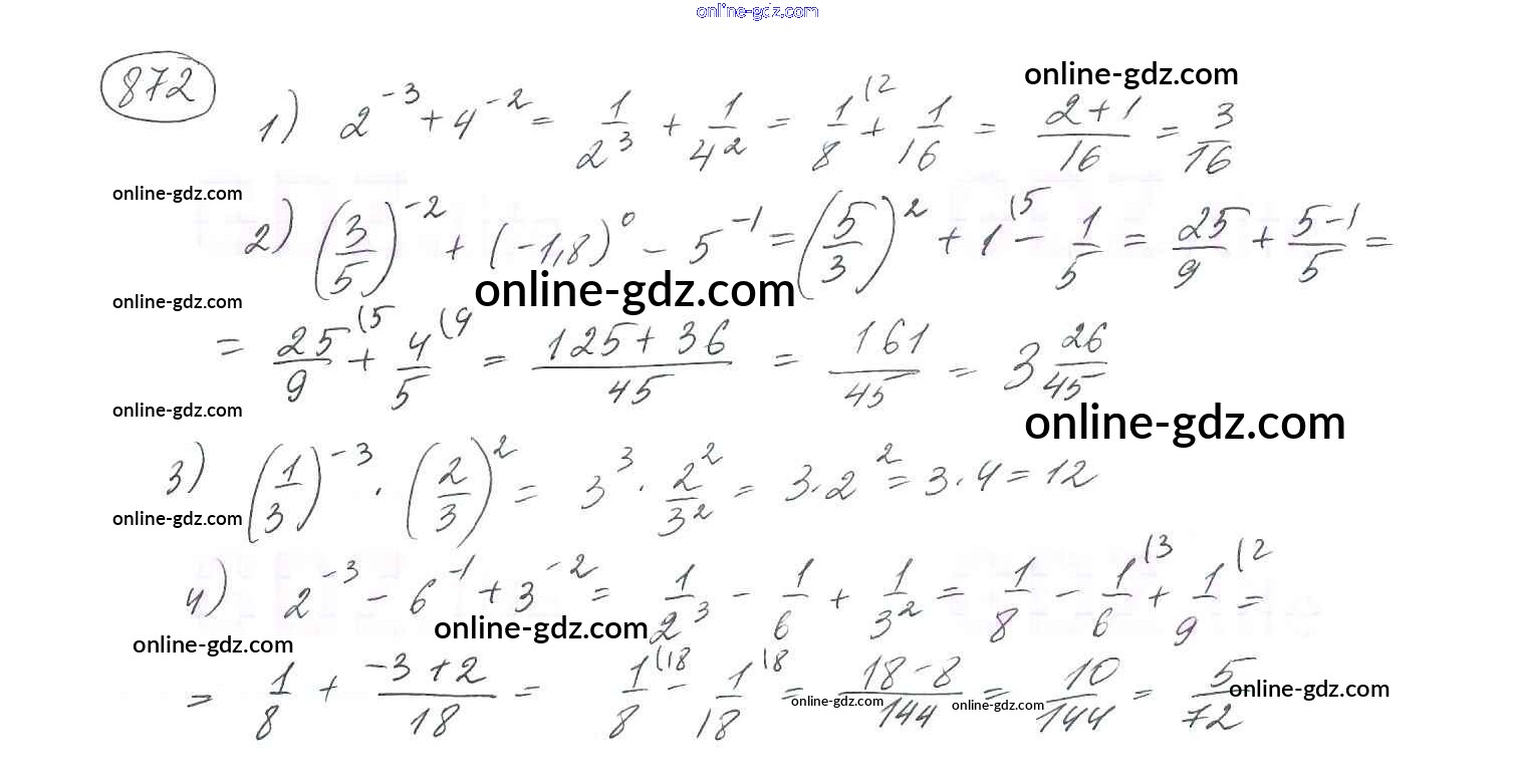 Готовые домашние задания по Алгебре за 8 класс Учебник Мерзляк, Полонский Алгоритм успеха 2016 - Упражнения для повторения курса алгебры 8 класса 872
