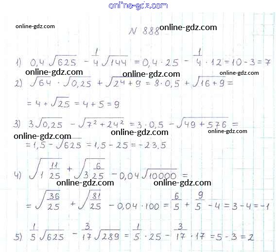 Готовые домашние задания по Алгебре за 8 класс Учебник Мерзляк, Полонский Алгоритм успеха 2016 - Упражнения для повторения курса алгебры 8 класса 888