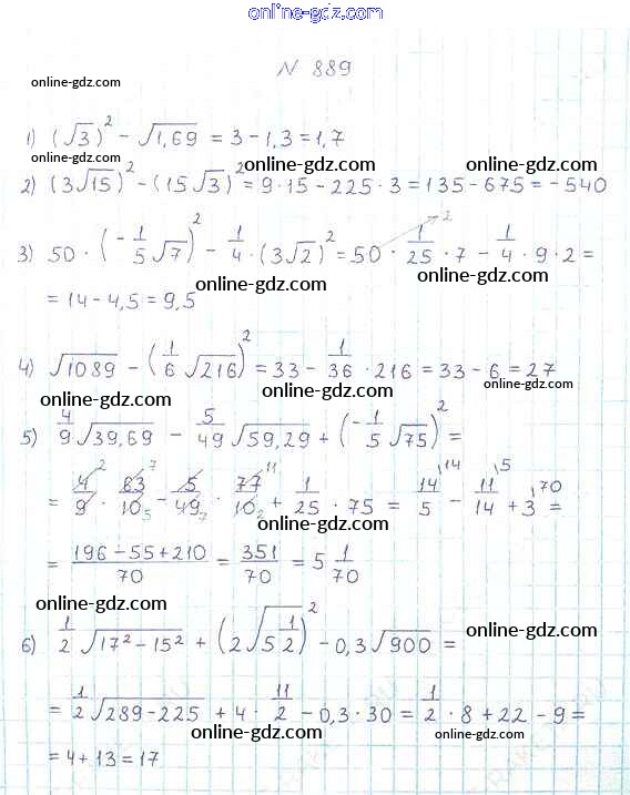 Готовые домашние задания по Алгебре за 8 класс Учебник Мерзляк, Полонский Алгоритм успеха 2016 - Упражнения для повторения курса алгебры 8 класса 889