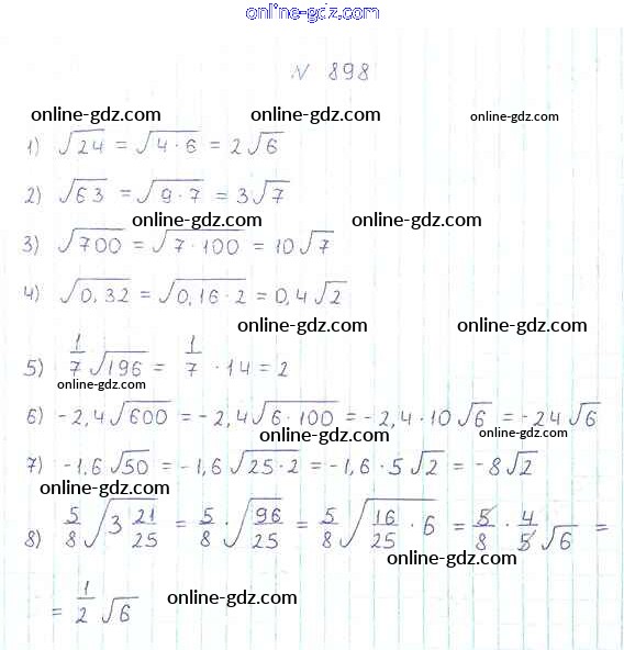 Готовые домашние задания по Алгебре за 8 класс Учебник Мерзляк, Полонский Алгоритм успеха 2016 - Упражнения для повторения курса алгебры 8 класса 898