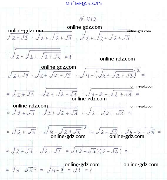Готовые домашние задания по Алгебре за 8 класс Учебник Мерзляк, Полонский Алгоритм успеха 2016 - Упражнения для повторения курса алгебры 8 класса 912