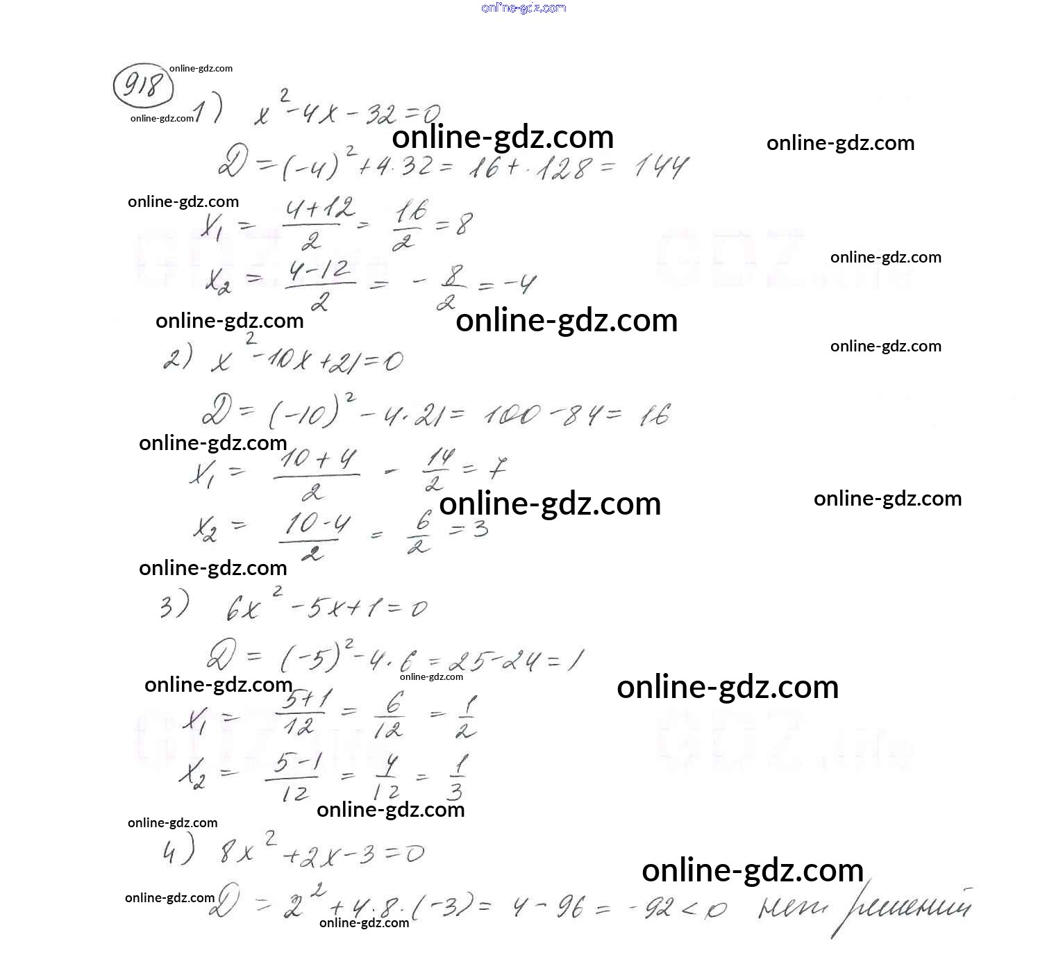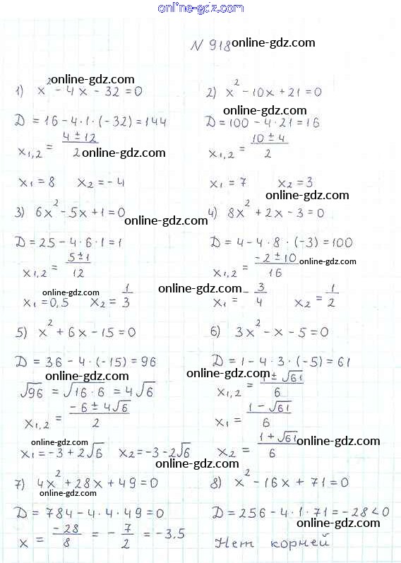 Готовые домашние задания по Алгебре за 8 класс Учебник Мерзляк, Полонский Алгоритм успеха 2016 - Упражнения для повторения курса алгебры 8 класса 918