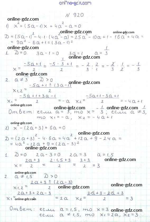 Готовые домашние задания по Алгебре за 8 класс Учебник Мерзляк, Полонский Алгоритм успеха 2016 - Упражнения для повторения курса алгебры 8 класса 920