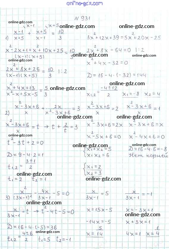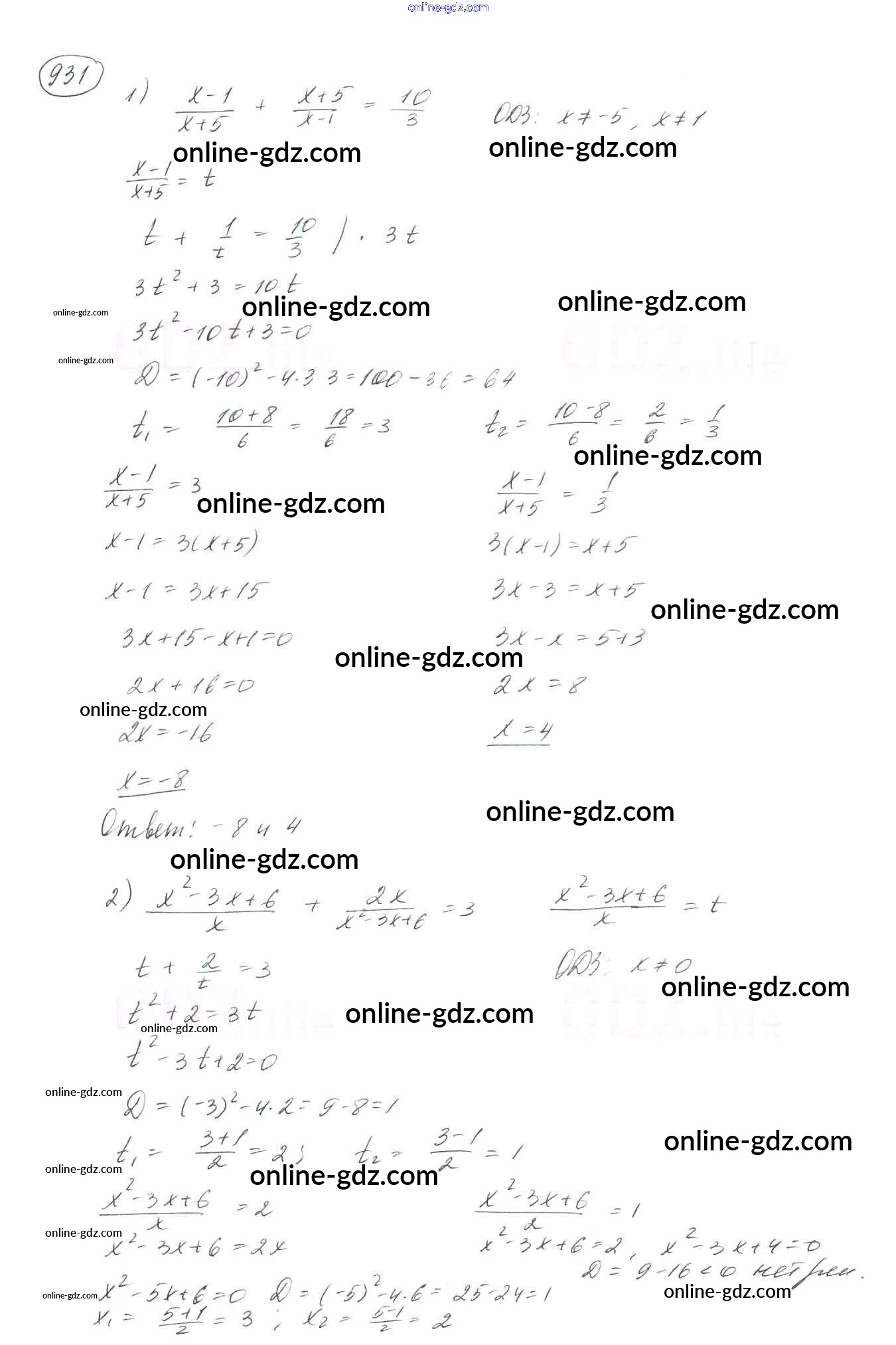 Готовые домашние задания по Алгебре за 8 класс Учебник Мерзляк, Полонский Алгоритм успеха 2016 - Упражнения для повторения курса алгебры 8 класса 931