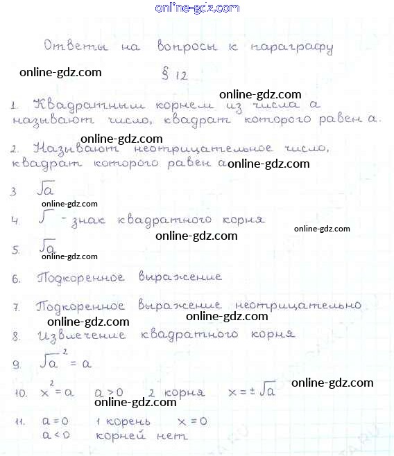 Готовые домашние задания по Алгебре за 8 класс Учебник Мерзляк, Полонский Алгоритм успеха 2016 - Вопросы к параграфу §12