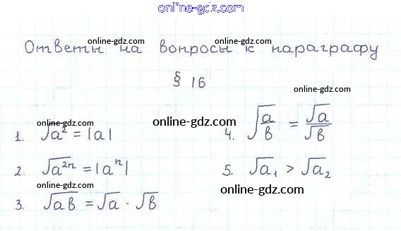 Готовые домашние задания по Алгебре за 8 класс Учебник Мерзляк, Полонский Алгоритм успеха 2016 - Вопросы к параграфу §16