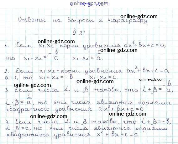 Готовые домашние задания по Алгебре за 8 класс Учебник Мерзляк, Полонский Алгоритм успеха 2016 - Вопросы к параграфу §21