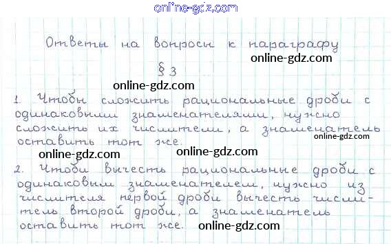 Готовые домашние задания по Алгебре за 8 класс Учебник Мерзляк, Полонский Алгоритм успеха 2016 - Вопросы к параграфу §3