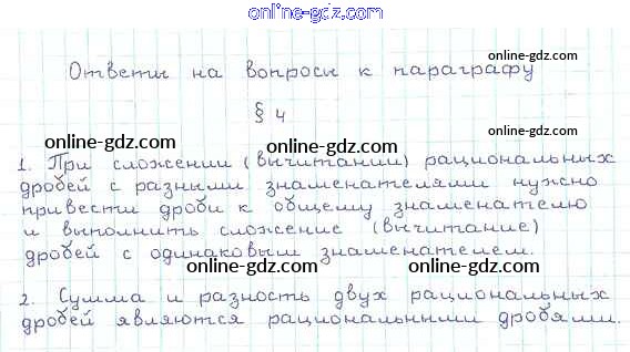 Готовые домашние задания по Алгебре за 8 класс Учебник Мерзляк, Полонский Алгоритм успеха 2016 - Вопросы к параграфу §4